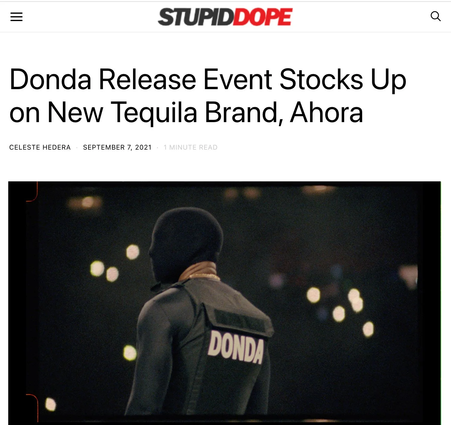IDEA: THE SELTZER WORLD IS BORING. IT LACKS FLAVOR, COLOR AND ATTITUDE. SO WE DROPPED THE NEW TEQUILA SELTZER LIKE WE WERE DROPPING A SHOE. WE COLLAB WITH ARTISTS, CULTURE MAKERS, FASHION DESIGNERS AND END UP BECOMING THE DONDA RELEASE OFFICIAL DRINK.