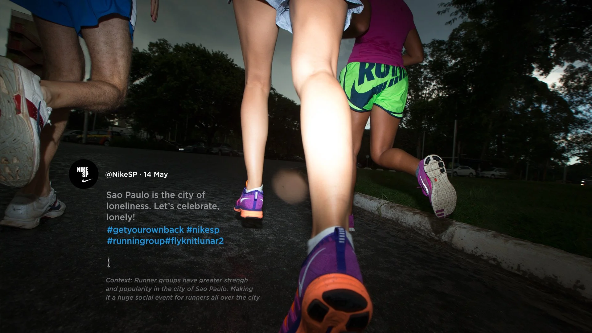 IDEA: Megacities like São Paulo take some things away from us: our time, our patience, and even our hope. Nike wants runners to Get it Back. #GetItBack #TomaDeVolta